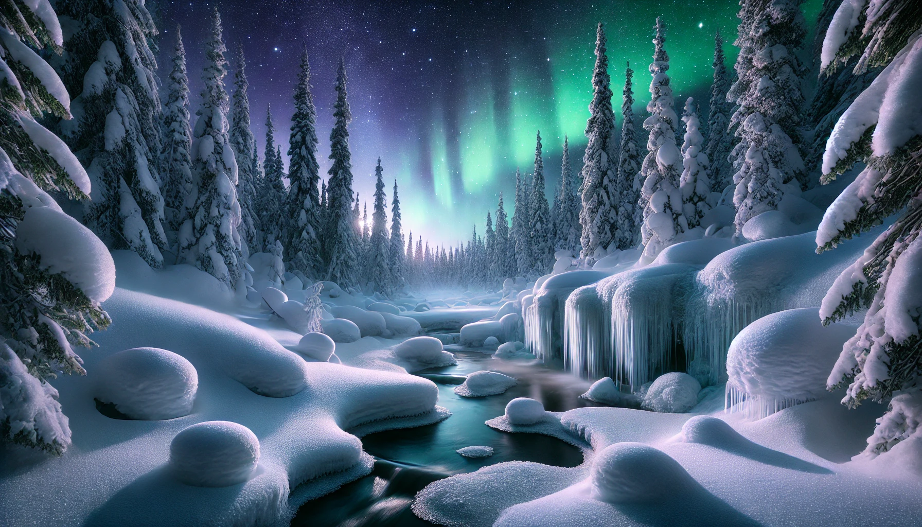 La forêt arctique pendant la nuit polaire. La vie pendant la nuit polaire